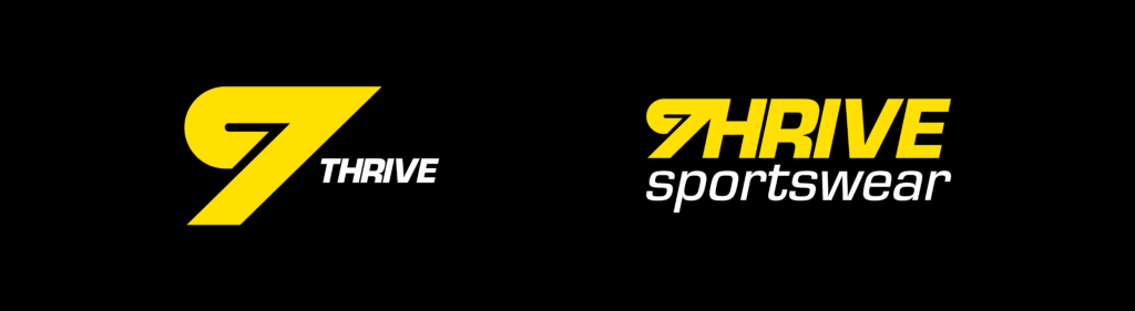 Het logo van Thrive is gebouwd op snelheid en energie. De schuine ‘T’ in het icoon staat voor beweging en vooruitgang, versterkt door het gebruik van felgeel. Samen met de strakke typografie vormt het een krachtige, sportieve identiteit precies wat past bij een merk voor ambitieuze sporters die altijd willen doorgroeien.